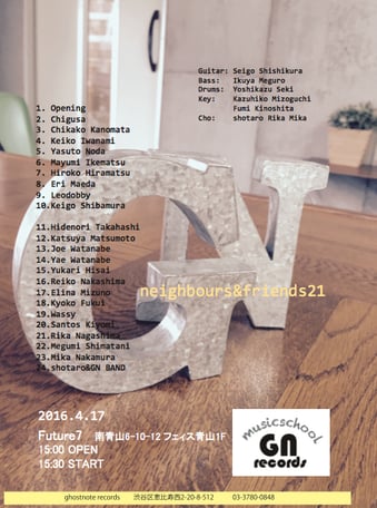 4/17青山FUTURE7にて開催の21回目GN発表会ライブは大きい会場で行われたにも関わらず盛況でした。